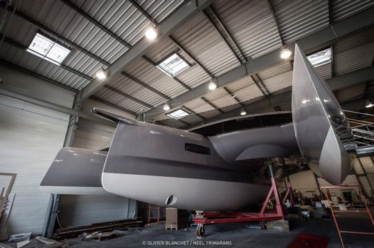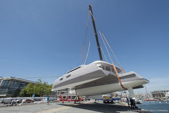 Wir hatten ihn Ihnen im März dieses Jahres vorgestellt. Der neue Neel 65 das Flaggschiff der Neel Trimaran-Werft wurde am Donnerstag, dem 28. Mai, in La Rochelle, wo sich die Werft befindet, zu Wasser gelassen. Nach der Produktion von 15 Neel 45 bringt Neel Trimarans nun die erste Serieneinheit eines neuen Trimarans auf den Markt. Und in der brandneuen Fabrik der Werft, die der Fertigstellung ihrer Trimarane gewidmet ist und nur wenige Schritte vom alten Hafen von La Rochelle entfernt liegt, erhielt das Boot letzte Woche seinen letzten Schliff.