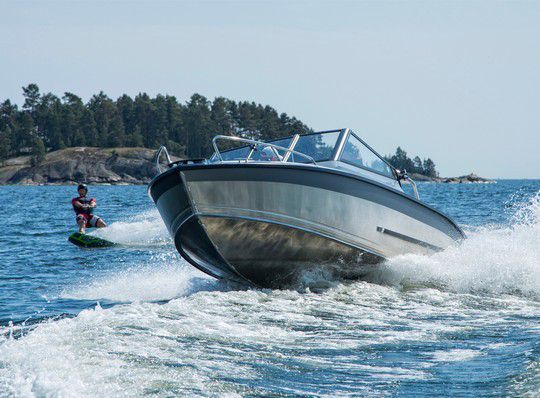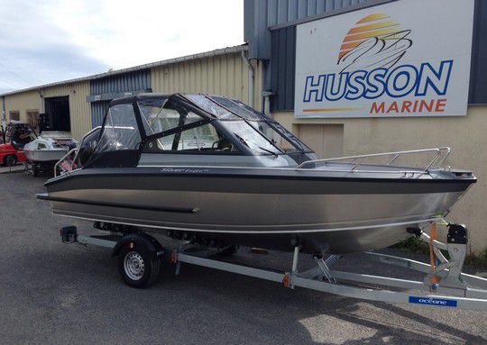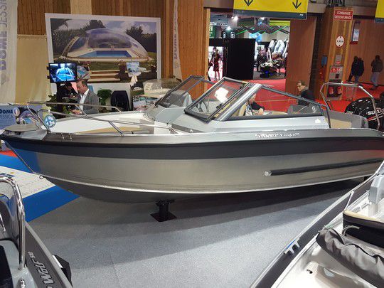 Silver Boat hat gerade das größte Modell der Werft mit dem Eagle BR 640 auf den Markt gebracht, ein Bugfahrwerk von 6,40 m für 2,25 m Breite. Auf der Designseite greift er die Linien der Marke mit einem Aluminiumrumpf, einer schwarzen Gummilisteon, Handläufen auf der Vorderseite, einem einfachen, aber komfortablen Layout auf. Auf der Ebene des Rumpfes hat es eine Änderung gegeben, da dieses neue Modell mit einem neuen Rumpf ausgestattet ist, der es ihm ermöglicht, die Wellen besser zu schneiden und gleichzeitig eine komfortable Navigation zu gewährleisten. Dank seines Aluminiumdesigns, seiner nüchternen Farben und seines raffinierten Layouts wirkt er sowohl modern als auch sportlich.