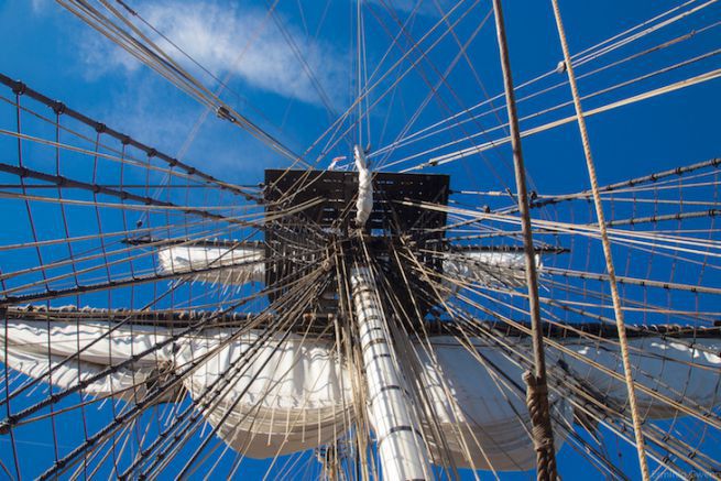 So die stehende Takelage besteht aus allen Kabeln und Seilen, die den Mast halten und auf die während der Navigation nicht eingewirkt wird.