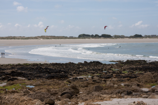 Etwas weiter oben befindet sich der Strand von Tronoën. Dieser Ort ist weniger frequentiert als die beiden vorherigen und mit vielen Dünen ganz natürlich. Die Sandbänke bewegen sich regelmäßig bei jeder Flut, und von der Spitze des Strandes aus müssen Sie die guten Spitzen beobachten.