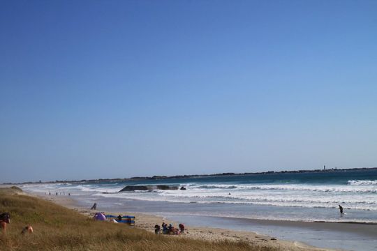 Schwimmen ist ohne Aufsicht verboten, aber der Strand wird im Juli und August von 13.00 bis 19.00 Uhr beaufsichtigt. Dort finden Sie alles, was Sie brauchen, um den Tag zu verbringen: öffentliche Toiletten und Duschen, einen Surfshop, eine Creperie und eine Surfschule. Und natürlich gibt es einen Parkplatz so nah wie möglich am Meer.