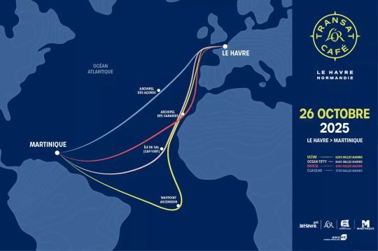 Am 26. Oktober 2025 werden die 74 Duos der Transat Café l'Or von Le Havre aus in Richtung Karibik aufbrechen. Sie werden die gleiche Route fahren wie die Schiffe aus dem 18. und 19. Jahrhundert, die Kaffee aus Südamerika in den Hafen von Le Havre brachten, dem ersten europäischen Kaffeehafen im 18. Jahrhundert. Allerdings in umgekehrter Richtung.