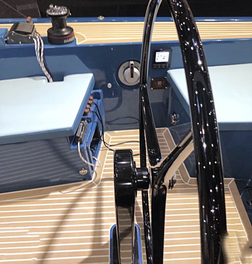 An der Vorderseite des Cockpits ermöglichen zwei Bänke mit hohen Rückenlehnen, dass Sie die Navigation bequem genießen können. Es ist möglich, einen Tisch für das Mittagessen im Freien aufzustellen, der auch nach innen versetzt werden kann.