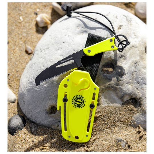Dieses Modell wurde von dem französischen Hersteller von wasserdichten Taschen und technischem Gepäck HPA entworfen und ist das Modell, mit dem die SNSM-Retter ausgestattet werden. So praktisch ist das! Auf dem Programm: integrierter Demanilleur, Einkerbung auf der Rückseite der Klinge, um ein Abrutschen des Daumens zu verhindern, und eine 3 mm dicke Teflonklinge als Hebel. Gewicht mit Wendehülle: 170 g. - 69 Euro