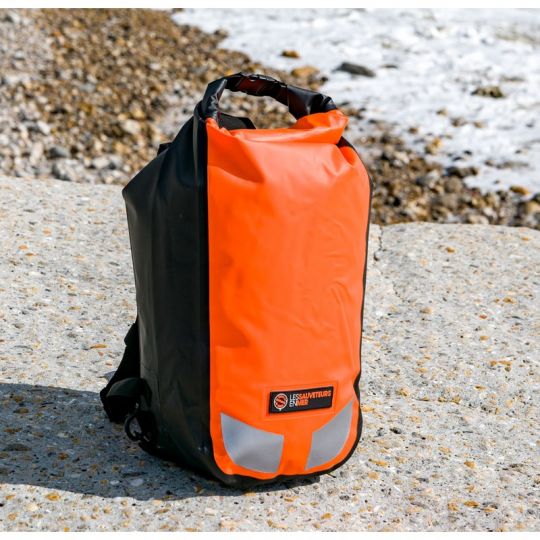 Geschweißter Aufbau und Rollverschluss: Dies sind die beiden Merkmale, die die Wasserdichtigkeit dieses Sacks gewährleisten. Sie können es ohne Risiko für seinen Inhalt mit an Bord nehmen. Abmessungen: 26 x 45 x 17 cm - 45 Euro