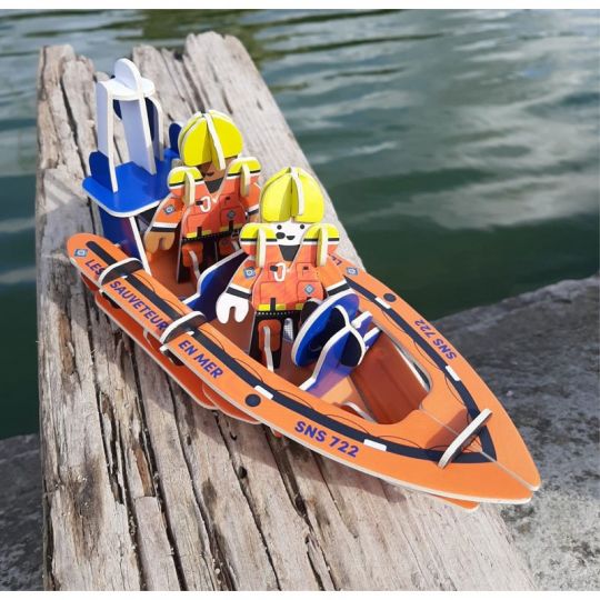 Nicht weniger als 49 Teile müssen zusammengebaut werden, bevor dieses RIB, das zur SNSM-Flotte gehört, und seine beiden Bordberretter zu sehen sind. Ab 4 Jahren. 9,95 Euro