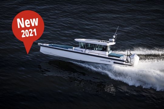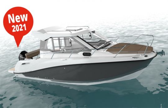 Der Hersteller erneuert sein Flaggschiffmodell mit dieser neuen Version des Axopar 28, der weiterhin in 3 Deck-Versionen erhältlich ist: Kabine, T-Top oder offen. Die vielseitige und leistungsstarke Axopar 28-Kabine ist mit einer neuen Konsole und einer neuen elektronischen Ausrüstung von Garmin ausgestattet. Das Dach weist auch ein neues Design mit integrierten Dachbalken auf, das den abenteuerlichen Look des Bootes noch verstärkt. Auch die Badeplattformen sind vergrößert worden.