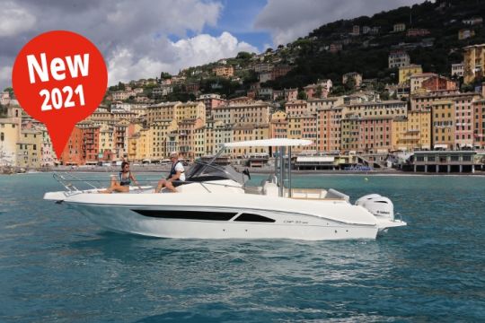 Die CAP 33 WA ersetzt die CAP 32 WA durch eine neue Standardausrüstung und eine erweiterte Liste von Optionen. Er verfügt über neue Badeplattformen, die die beiden Yamaha-Außenbordmotoren mit einer maximalen Leistung von 600 PS einrahmen. Auch der Innenraum wurde überarbeitet, mit einer mobilen und umklappbaren Rücksitzlehne und großen Staufächern. Der Raum unter Deck ermöglicht komfortables nächtliches Vergnügen an Bord mit einem in eine Doppelkoje umwandelbaren Salon und einer separaten Toilette. Die Liste der Optionen ermöglicht es Ihnen auch, Ihr Boot mit einem starren Fiberglas-Hardtop und Bimini sowie mit hinterleuchteten Lautsprechern auszustatten.