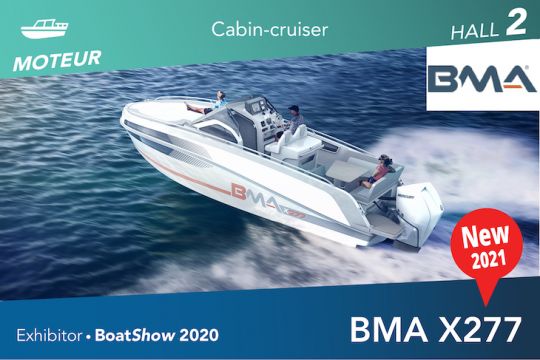 Die BMA X277 ist das größte Modell der BMA-Reihe und ermöglicht dank ihrer schön beleuchteten Kabine mit vier Kojen und einem Badezimmer mit Dusche nun auch Kreuzfahrten. Der Außenbereich ist mit einer Kombüse und einem Cockpit mit einem schönen Salon ausgestattet, der zu einem Sonnendeck umgebaut werden kann. Die BMA X277 ist bereits als Basismodell sehr gut ausgestattet und benötigt nur wenige Optionen. Er ist mit zwei 200-PS-Mercury-Außenbordmotoren oder einem einzelnen 150-PS-Motor erhältlich.