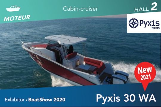 Die Pyxis 30 WA ist ein komfortabler 9,40-Kabinenkreuzer, der für lange Wochenenden auf See mit höchstem Komfort ausgelegt ist. Die Werft hat sich auf das Innere konzentriert und bietet eine geräumige Doppelkoje am Bug und eine elegante Toilette mit einer schönen Stehhöhe. Für den Familiengebrauch konzipiert, ist es auch möglich, sich für eine zweite Doppelkoje am Heck zu entscheiden. Das Deckslayout ist ebenso geräumig mit einem Cockpit für 6 Personen und einer Sonnenliegefläche am Bug für 2 Personen. Mit 2x300 PS können sich Adrenalin-Junkies mit einer Geschwindigkeit von 48 Knoten verwöhnen lassen.