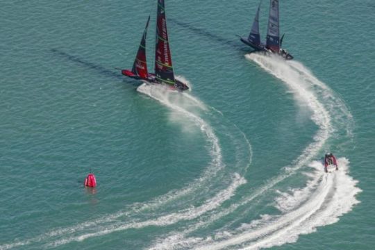 Erhöhen der Leistung der Motoren, um den Segelbooten auf ihren Foils zu folgen