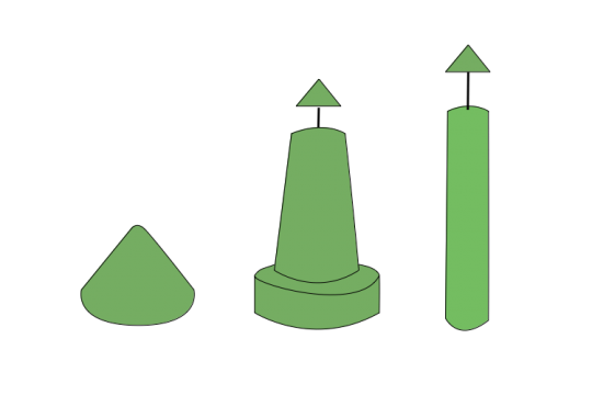 - Kegelförmig oder mit einem grünen dreieckigen Licht, das nach oben zeigt