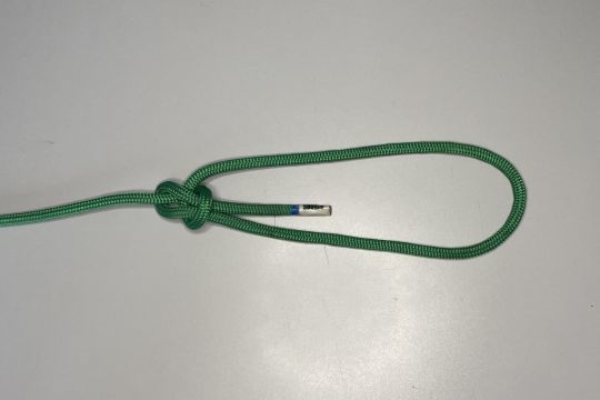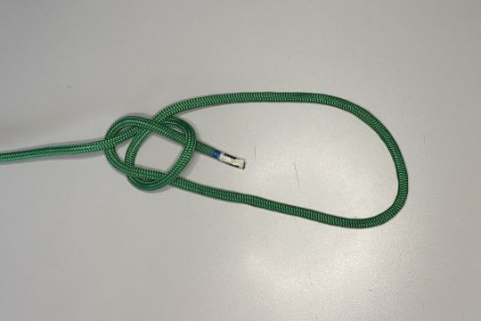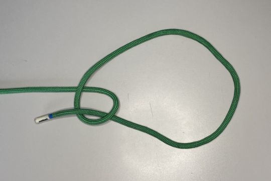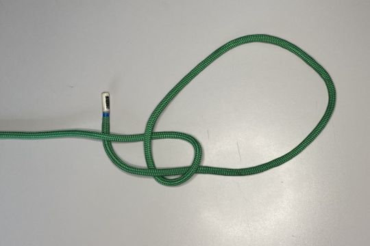 1 - Stellen Sie einen halben Schlüssel her. Achtung: Der Gauben, der längste Teil des Seils, muss unterhalb des Stroms liegen.