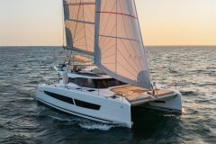 Der Katamaran, der nach seinem Hund "Uky" benannt ist, hat steile Formen, wiegt etwa 5 Tonnen und hat einen Tiefgang von 15 Metern. Das bedeutet, dass Sie auf Überverkäufe achten müssen