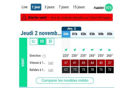 Ich schaue mir an, wie sich der Hafen von Concarneau bei anderen Stürmen verhalten hat. Natürlich ist das Bild des Sturms von 1987 in allen Köpfen. Ich weiß nicht, ob es wirklich in allen Köpfen ist, aber in meinem ist es auf jeden Fall präsent. Ich sehe, dass er als Hurrikan kategorisiert wurde. Es beruhigt mich also in gewisser Weise, dass MeteoConsult "nur" von einem heftigen Sturm spricht.