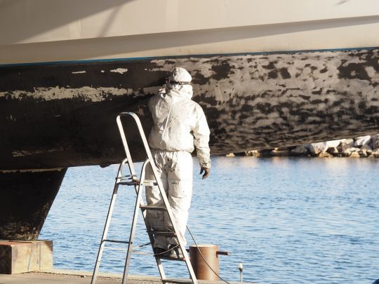 Zunächst sollten Sie alle Blasen, die durch das Auftreten von Osmose entstanden sind, ausfindig machen und sie abkratzen, bis der Rumpf freigelegt ist. Der Bereich muss vollständig getrocknet werden, wobei die Stellen regelmäßig mit Süßwasser abgespült werden müssen. Ziel ist es, alle salzhaltigen Bestandteile zu entfernen, die für das Osmosephänomen verantwortlich sind.