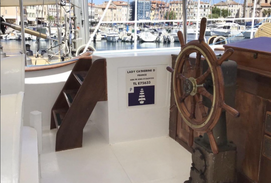 Ludovic erzählt uns, wie es weiterging: "Wir beschlossen 2010, die ECILA zu kaufen, um sie vor der Zerstörung auf einem Schiffsschrottplatz zu retten. Wir haben sie 2012 französisiert und in Lady Catherine D umbenannt, nach meiner Großmutter Catherine Digne, geborene Reggio-Paquet, der Enkelin des französischen Reeders Nicolas Paquet, der die gleichnamige Reederei in Marseille gegründet hat."