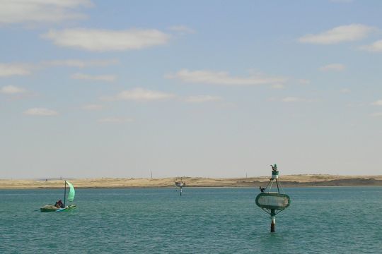 Am nächsten Tag brechen wir wieder auf. Ein weiterer Tag zwischen Dünen und stählernen Mastodonten. Ein Tag, an dem wir die Symbolik der Passage ermessen. Hinter uns liegt das Mittelmeer, vor uns das Rote Meer und der Indische Ozean. Eine Grenze, die wir, vom Wind getragen, überqueren.