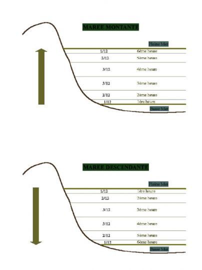 Diese Regel besagt, dass der Anstieg oder das Absinken des Meeresspiegels einer Beschleunigungs- und dann einer Abbremskurve folgt. Während jeder Gezeitenperiode (ca. 6 Stunden) ist folgende Verteilung des verdrängten Wasservolumens zu beobachten: