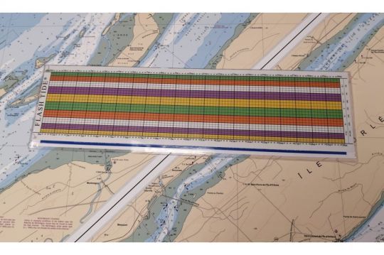 Eine gute Option ist der FlashTide Gezeitenrechner, ein grafisches Tool, mit dem Sie die Wasserhöhe zu jeder Tageszeit ablesen können, indem Sie einfach eine Gerade mit einem Bleistift darauf zeichnen. Er ist einfach zu bedienen und erspart Ihnen das Rechnen mit der Zwölftelregel.