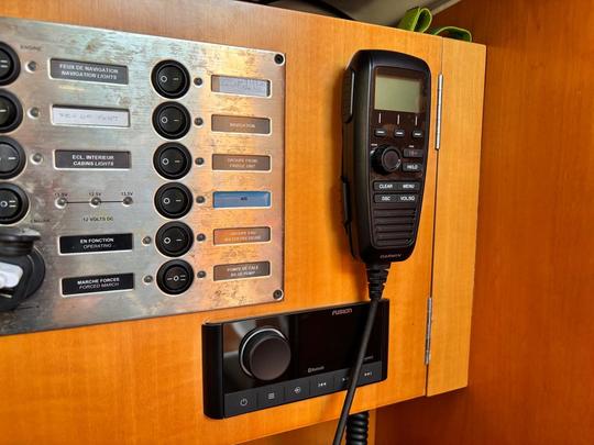 Das gesamte System ist mit dem Autopiloten Reactor verbunden, der mit einem speziellen Garmin-Kit für eine bessere Steuerung unter Segeln ausgestattet ist. Schließlich rundet das Fusion RA670 Audiosystem den Komfort an Bord mit Lautsprechern in der Kabine und im Cockpit ab.