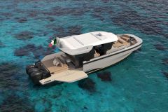 Der Decksplan des P50 Sport begünstigt Wassersportaktivitäten mit einem breiten Achterdeck und einer erleichterten Zirkulation nach vorne. Im Gegensatz dazu setzt das Coupé-Modell auf Sicherheit und Komfort bei schlechtem Wetter mit einem vollständig geschlossenen Cockpit und einer zentraleren Innenanordnung. In beiden Fällen stützen sich die Manöver auf die IPS-Propeller und einen Joystick zur Steuerung.