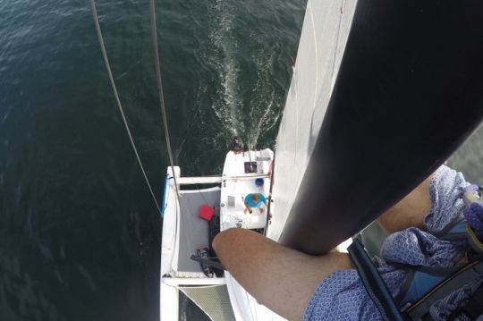 Die espars (Baum, Großsegelflaschenzug, Spinnakerbaum) sind beim Manövrieren besonders gefährlich, vor allem bei rauer See.