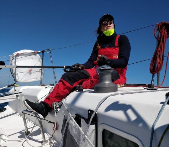 Sie kämpft sich in der Rangliste stark nach oben, bis sie einen Schaden am Steuerbordvorstag erleidet. Nach einer notdürftigen Reparatur, einem Spinnaker bei Leichtwind und der gebotenen Vorsicht verliert sie an Boden, lernt aber sehr viel. " Die Übung bestand darin, so lange engagiert zu bleiben, nie loszulassen und gleichzeitig den Moment zu genießen".