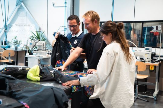 Für den in La Rochelle ansässigen Ausrüster eröffnet diese experimentelle Kapsel neue Wege für die Gestaltung. " Ein Outfit in den Farben ihres Projekts herzustellen und dabei ein Kunstwerk zu integrieren, war eine echte technische Herausforderung." die Schülerinnen und Schüler sollten sich auf das Thema konzentrieren. Leloluce betont seinerseits das Zusammentreffen zweier Welten:" Kunst in den Hochseerennsport zu bringen, bedeutet, es zu wagen, die Welten zu vermischen. Mit Quentin und TRIBORD - Decathlon haben wir ein Outfit entworfen, das die Farbe, das Leben und die Energie der Sternschnuppen ausstrahlt."