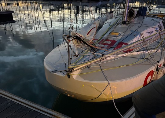 Das Ergebnis ist ein missglückter Start des Rennens, ein stark beschädigter Bug und eine erzwungene Rückkehr in den Hafen für den Skipper von Pellipop - PSE: pour un sourire d'enfant. Der Schlag ist hart, denn wie für alle Ministen stellt dieser Start den Höhepunkt jahrelanger Arbeit dar.