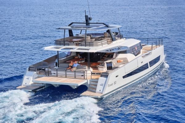 Der Power 80 ist für lange Strecken konzipiert und bietet bis zu 12 Passagieren einen hohen Komfort. Die Standardmotorisierung besteht aus zwei 480-PS-Blöcken, wobei eine Option auf 2 x 900 PS für noch mehr Leistung besteht. Mit fast 5000 l Treibstoff an Bord gehört diese Motoryacht zu der Kategorie der Katamarane, die mehrere Tage ohne Zwischenstopp segeln können. Auch wenn die Reisegeschwindigkeiten noch nicht offiziell bekannt gegeben wurden, lässt die Konfiguration auf transozeanische Überfahrten schließen, insbesondere zu den Antillen oder den nordamerikanischen Küsten.