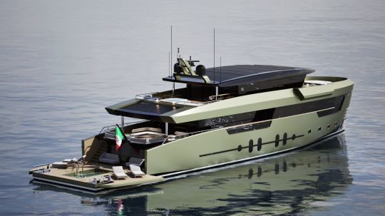 Die Außenbereiche greifen die Codes der Erkundung auf und verfügen über aufgeräumte, multifunktionale Decks. Das Heck beherbergt eine große Plattform, die einen Whirlpool, Beiboote oder ein kleines Landfahrzeug aufnehmen kann. Auf dem Vorschiff dient eine Lounge mit Feuerkorb als Beobachtungsraum.