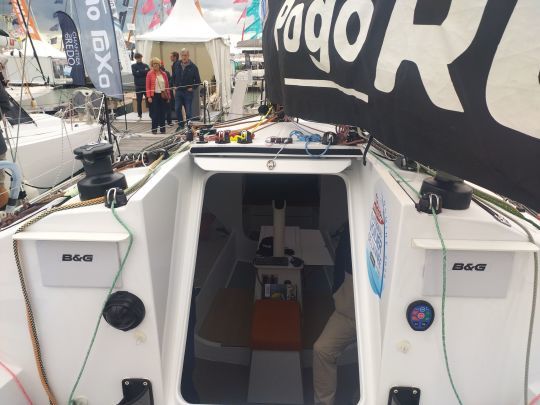 Die Pogo RC wurde für den IRC-Standard entwickelt, ohne den Geist der Werft zu verleugnen. Sie richtet sich eindeutig an ein erfahrenes Publikum: erfahrene Regattasegler, die lange, schnelle Segeltörns und gemischte Rennen lieben. Die Präsenz der RC auf der Grand Pavois stieß bei den Besuchern auf reges Interesse, insbesondere bei Mini- und Class40-Eignern, die auf der Suche nach einem vielseitigeren Träger waren.