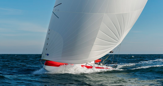 Das Ergebnis ist ein gleitender Rumpf, der auf den tragenden Kursen kraftvoll ist, aber dank eines ausgewogenen Segelplans und einer besonderen Aufmerksamkeit für die Massenzentrierung auch zu gleichmäßigen Leistungen auf dem Vorwindkurs fähig ist.