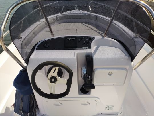 Die Konsole ist schlicht, aber gut proportioniert. Die leicht geneigte Windschutzscheibe aus Plexiglas schützt den Fahrer effektiv, während das Lenkrad und der Gashebel natürlich in die Hände fallen. Die Ergonomie des Cockpits ist typisch mediterran und lädt dazu ein, im Stehen oder auf dem Hintern stehend zu steuern. Die beiden drehbaren, schön gestalteten Einzelsitze bieten guten Halt, wobei sich die Rückenlehne umklappen lässt, um den Leaning-Post in einen Doppelsitz zu verwandeln.