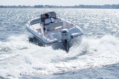 Mit einer Länge von 5,55 Metern und einer Breite von 2,40 Metern gehört die H19CC zu den kompakten Familien-Openern. Der erste Eindruck am Steg ist jedoch, dass das Boot größer ist, als es aussieht. Der Step-Rumpf, das Markenzeichen von Ranieri, strahlt eine dynamische und sportliche Sitzposition aus.