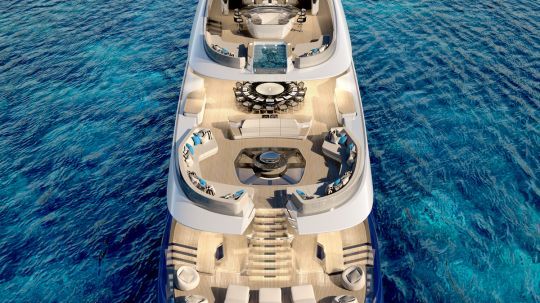 "Hybridantrieb" ist ein häufig verwendeter Begriff, aber die konkrete Umsetzung in einer Superyacht mit einer Länge von über 70 Metern bleibt ein heikles technisches Thema. RMK kündigt ein Hybridsystem der nächsten Generation an, das mit Lösungen zur Erzeugung von erneuerbarer Energie an Bord kombiniert wird. Es bleibt abzuwarten, welche Technologien zum Einsatz kommen werden: Lithium-Ionen-Batterien, in den Dachhimmel integrierte Solarpaneele oder auch eine Wasserstoffzelle, die in Betracht gezogen wird?