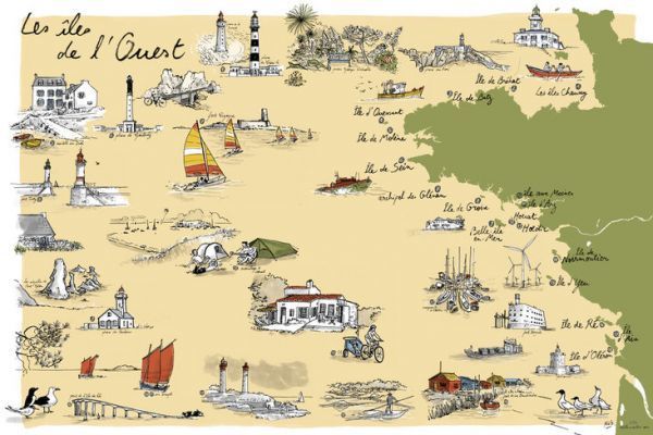 Nach ihrer Rückkehr in die Bretagne beginnt Margot eine neue Sammlung: eine illustrierte Karte für jede Küsteninsel, die sie geliebt hat. Dazu gehören Groix, Belle-Îles-en-Mer, Houat, H?dic, aber auch Sein, Molène und Ouessant. Jede Karte ist eine Erkundung mit Tinte und Wasser, zwischen Navigationsbuch und künstlerischer Interpretation.
