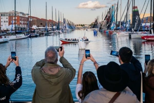 Die ersten Bewegungen beginnen bereits um 9 Uhr. Das Dorf öffnet seine Tore und bietet die Möglichkeit, die Mannschaften bei ihren Vorbereitungen zu beobachten. Es ist auch die letzte Chance, die Boote am Kai zu sehen, die Aufbruchsstimmung einzuatmen und die letzten Anweisungen von den Pontons zu hören. Einige Skipper haben ein paar Worte mit dem Publikum gewechselt, die Hände in Handschuhen am Steuerrad und den Blick bereits auf den Atlantik gerichtet.