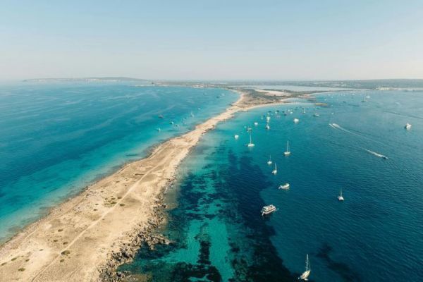 Wenn Sie den Hafen verlassen, öffnet sich das Meer auf Ses Illetes dieser mythische Sandstreifen zieht sich mit seinen türkisfarbenen Abstufungen bis zur kleinen Insel Espalmador. Es ist eine fast tropische Szenerie, die zu den schönsten Stränden der Welt zählt. An Land wechseln die Salinen im Laufe des Tages ihre Farbe: rosa im Morgengrauen, silbern am Mittag und weiß bei Sonnenuntergang.