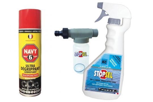 In Werkstätten ist NAVY 6 als Ergänzung zu STOPSEL erforderlich. Dieses Multifunktionsprodukt (6 Funktionen: Schmiermittel, Rostlöser, Rostentferner, Reiniger, Wasserverdränger und elektrischer Schutz) wird an Verbindungen, beweglichen Teilen und Schnittstellen, die Feuchtigkeit ausgesetzt sind, angewendet. Es ist weniger fetthaltig als herkömmliche Produkte und ermöglicht ein sauberes, nicht übermäßiges Auftragen.