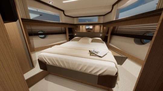 Die Werft wirbt mit Individualisierungsoptionen, die es bei ihren Vorgängermodellen noch nie gegeben hat. Kabinen, Nasszellen, Möbel, Arbeitsflächen, Elektrogeräte - alles kann nach den Wünschen des Eigners angepasst werden. Es werden zwei Innenausstattungen angeboten, die von Marco Casali entworfen wurden.