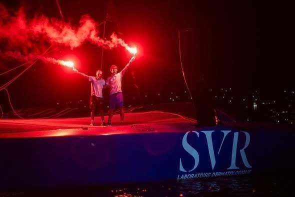 Dahinter komplettierten Thomas Coville und Benjamin Schwartz ein großartiges Podium. Sie überquerten die Ziellinie am Donnerstag, den 6. November um 02:40 Uhr Ortszeit (07:40 Uhr in Paris). Ihre Rennzeit: 10 Tage, 17 Stunden, 40 Minuten und 9 Sekunden. Sodebo hat 6.591 Seemeilen mit einer Durchschnittsgeschwindigkeit von 25,6 Knoten zurückgelegt.