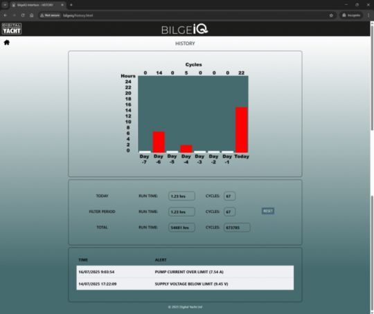 Der Bilge iQ ist auch mit den Cerbo GX-Steuerungen von Victron Energy kompatibel und lässt sich in das VRM-Ökosystem für Fernabfragen integrieren. So kann man überprüfen, ob das Boot trocken bleibt, auch wenn man Hunderte von Meilen entfernt ist.