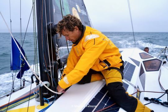 Auch wenn er allein an Bord ist, spricht Pierre natürlich von seinem Partner. Er spricht von ihrer Komplementarität, der gemeinsamen Vorbereitung und dem gegenseitigen Respekt, der im Laufe der Jahre aufgebaut wurde, zunächst als Konkurrenten, jetzt als Teamkollegen. Aber heute ist es seine Stimme, die man hört, und sie sagt viel darüber aus, was eine Transatlantikfahrt im Doppelpack bedeutet.