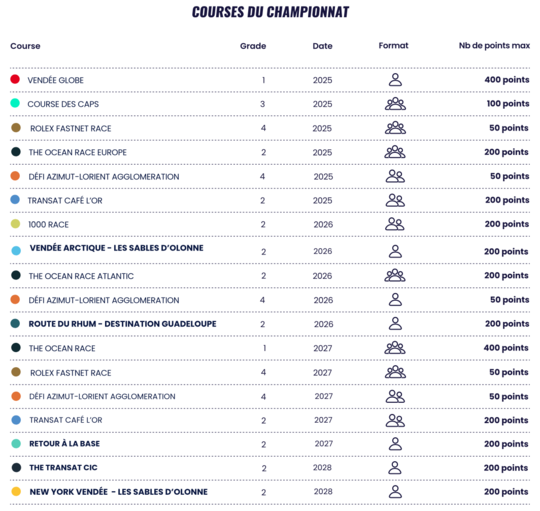 Als erstes Rennen des Qualifikationszyklus startet die Vendée Arctique Les Sables d'Olonne am 7. Juni 2026 . Ziel ist der Polarkreis, bevor es zurück in den Hafen der Vendée geht. Dieses Einhandrennen der Klasse 2 wird eine entscheidende Etappe für die Anwärter darstellen.