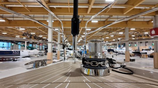 Meistens kann man nicht hoch heben. Die Stehhöhe schränkt den Manövrierspielraum ein: Man muss den Rumpf anheben, den Trailer rückwärts fahren und das Boot dann auf seiner Wiege auf den Boden legen. Einige Boote, wie die Amel 60, müssen "tiefer gelegt" werden, indem das Hardtop abmontiert wird. Immerhin kommen die Segelboote in diesem Jahr ohne Kiel an.