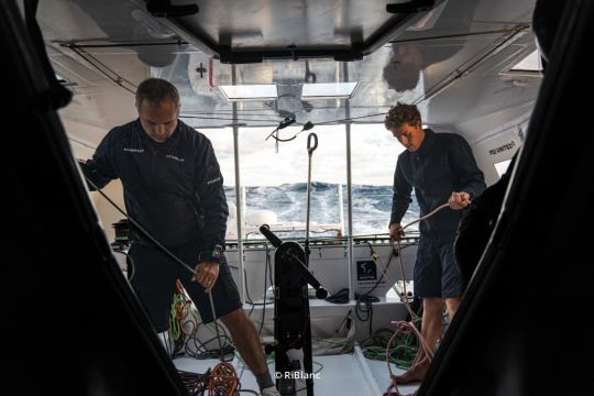 Nur weil ein Imoca Foils hat, heißt das noch lange nicht, dass er perfekt ist. Andreas vermisst auf seinem IMOCA mit Flossen einige praktische Ausrüstungsgegenstände. Fabrice hingegen setzt stark auf das Sammeln von Umweltdaten an Bord. CO2, Mikroplastik, Meeres-DNA: Das Boot hat eine Mini-Wissenschaftsstation an Bord, um die Ozeane, die es durchquert, besser zu verstehen.