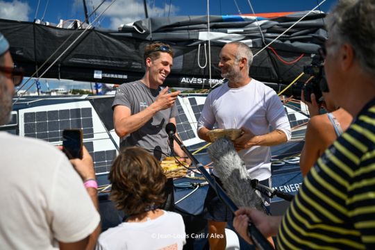 Fabrice Amedeo und Andreas Baden bilden die Besatzung des Einrumpfbootes FDJ United-Wewise, das an der Transat Cagé l'Or 2025 teilnimmt. Sie trafen sich am Kai, bevor sie in See stachen, zu einem Interview ohne Fachjargon, aber reich an Menschlichkeit. Zwischen Humor, Klarheit und Übertragung enthüllen die beiden Segler eine andere Facette ihres Duos.