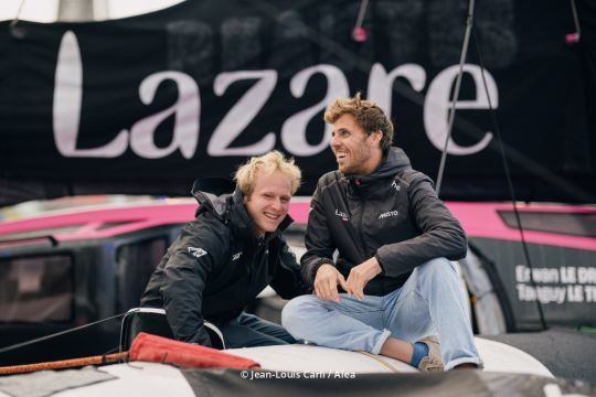 Es war nicht ihre erste Transatlantikregatta, aber es war ihre erste auf diesem Boot. An Bord des Trimarans Ocean Fifty Lazarus x Hellio tanguy Le Turquais und Erwan Le Draoulec bilden eine völlig neue Mannschaft. Mit der Erfahrung eines Vendée Globe-Finalisten und der Frische eines Mini Transat-Siegers scheint das Duo bereit, die Meilen der Transat Café de l'Or 2025 zu verschlingen.